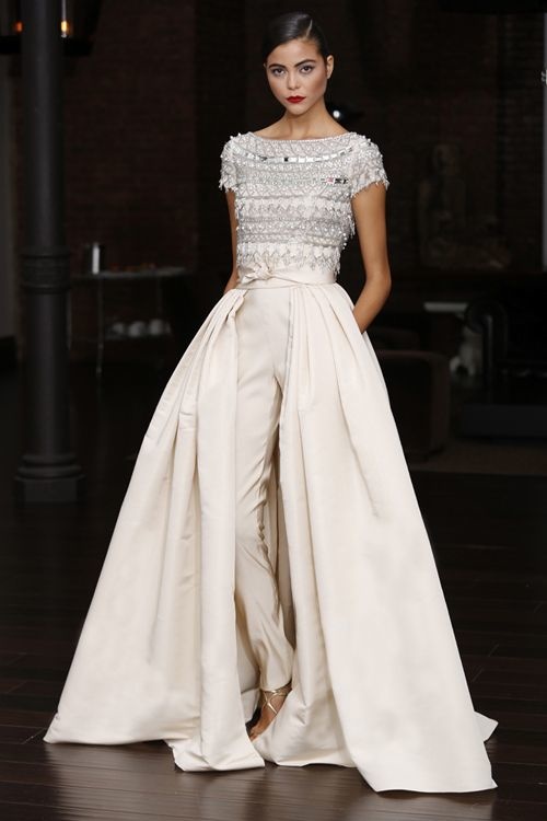 سروال، سترة أو بلوزة، لحفل زفاف حميمي، صغير، سريع، أو أن يكون خيارك الثاني بعد أداء الرقصة الأولى أو أيا تكن الأسباب فأنت صاحبة القرار في التصميم الذي تختارينه لأهم يوم في حياتك. لا تعطي أهمية لأي تعليق قد تسمعينه في حال قررّت اختيار هذا الموديل فالمهم أن تكوني مرتاحة، واثقة وسعيدة.