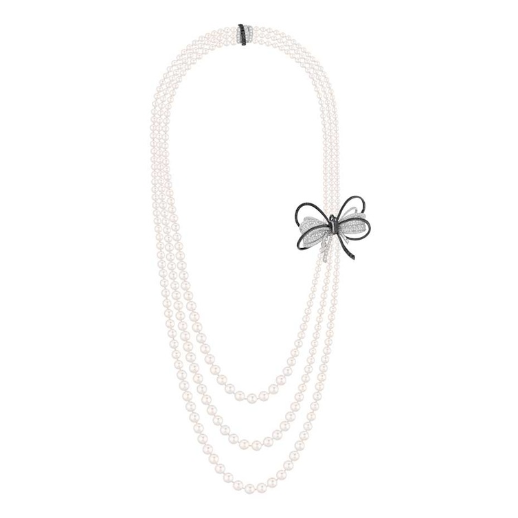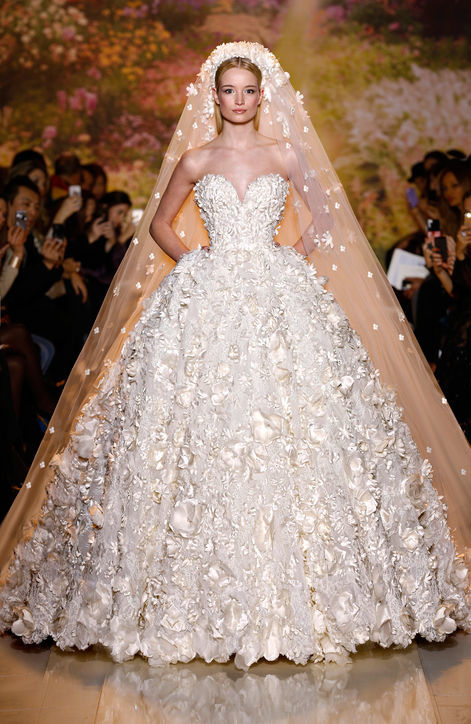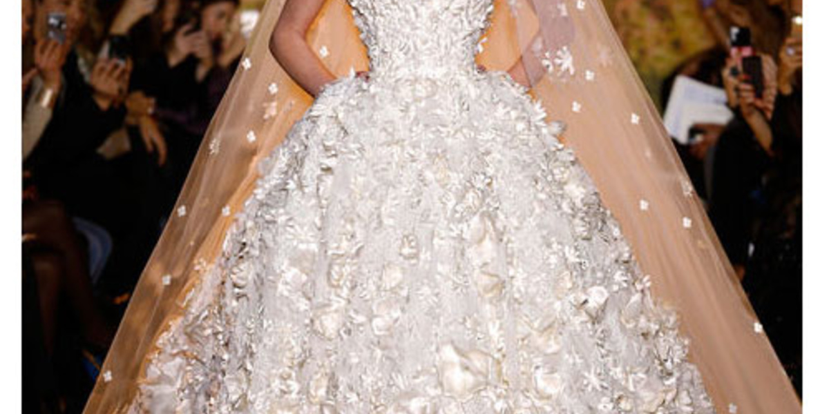 اخترنا بداية فستان الزفاف من "زهير مراد"؛ وهو فستان مميز بتصميم مذهل وزخارف في غاية الروعة والتألق، و بناء عليه سنقوم بانتقاء أكسسوارات لؤلؤية تتلاءم معه. وتشمل مختاراتنا من الأكسسوارات قلادة "روبان كوتور Couture Ruban" من تشكيلة "شانيل Chanel" المعروفة بإسم "إنتمبوريلز Intemporels" و تتألف من الآلئ اليابانية والماس؛ كما اخترنا أقراطاً ستتناغم معها جدا من "يوكو لندن Yoko London" وهي مصنوعة من لآلئ البحار الأسترالية الجنوبية والماس الأبيض والأسود.  و لاستكمال إطلالتنا، لدينا صندل زفافي لامع من "جيمي تشو Jimmy Choo" بلون فضي وذهبي يتميز بأناقة رائعة، ثم لدينا حقيبة من "كوتور مارغو Kotur Margo" بحلة جميلة للأزهار.