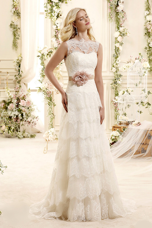 تم اختيار فستان الزفاف من تشكيلة "كوليت Colet". الفستان مصمم بستايلA-line مع فتحة العنق الوهمية الشفافة (illusion neckline) بأسلوب كلاسيكي جذاب للغاية. قمنا بمطابقة هذا الفستان بمجوهرات متلألئة تشمل خاتم من "شانيل Chanel" يطلق عليه إسم خاتم "روبان Ruban للمجوهرات الراقية" ويضم قطعة وسادية الشكل من الياقوت الوردي و فصوصاً متلألئة من الماس. اخترنا كذلك تاج "لينيس Linneys" بحلة جميلة ترصعها فصوصاً من الماس الوردي. ولاستكمال الإطلالة لدينا حذاء "فالنتينو Valentino" المصمم بأسلوب جميل جدا من الدانتيل مع فيونكة؛ و أخيرا أضفنا حقيبة أنيقة وراقية من "غوتشي Gucci".