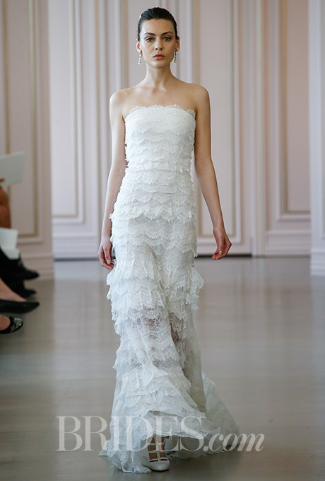 إخترنا أيضا فستان زفاف جذاباً جدا من "كارولينا هيريرا Carolina Herrera" بحلة محتشمة وأسلوب أنيق للغاية. يتكون التصميم من فستان دانتيل بدون أكمام تحته مشد من دانتيل الأورغانزا وتنورة جميلة بقصة حورية البحر أعطت للفستان حلة جذابة حقا.