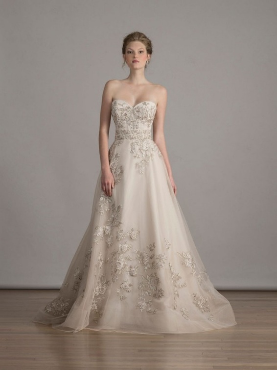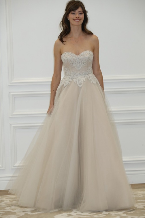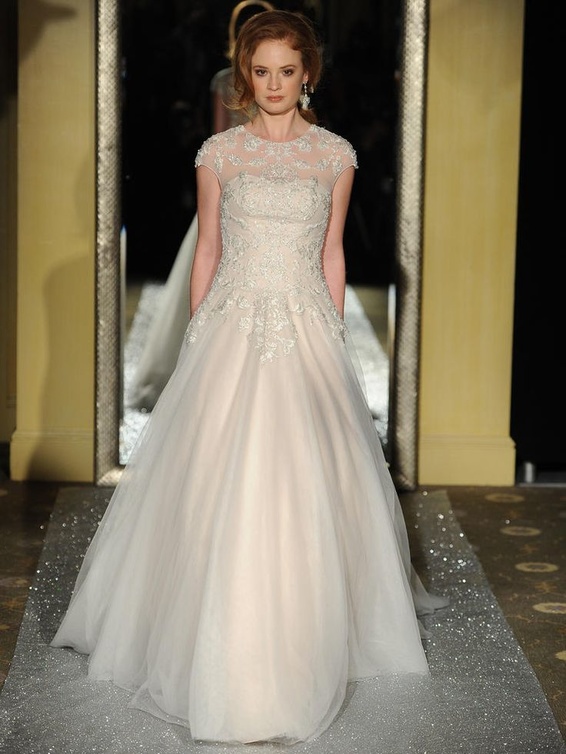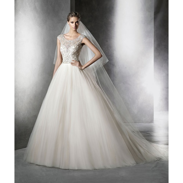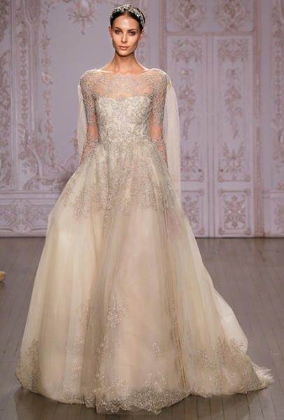 أما فستان الزفاف "ليانكارلو Liancarlo" فيتميز بستايل رائع جدا وحلة ناعمة ولون مائل إلى الرمادي الباهت مع تطريزات مذهلة جائت في تناغم تام مع تصميم الفستان ككل. ولدينا أيضا فستان الزفاف من "برونوفياس Pronovias" تشكيلة 2016؛ و هو يتميز بستايل أميري فاخر مصنوع من قماش التل وتقويرة عنق رائعة مطرزة بالأحجار الكريمة.