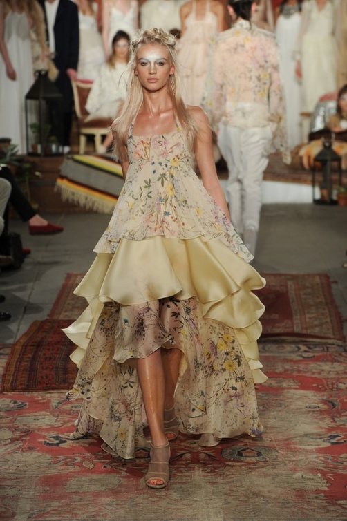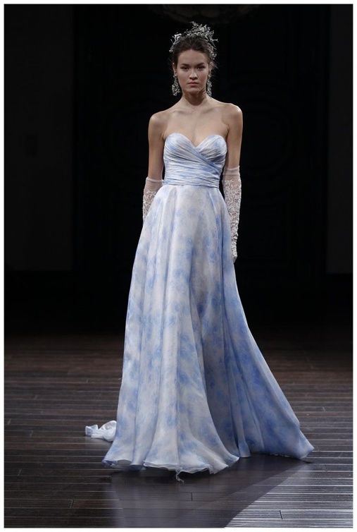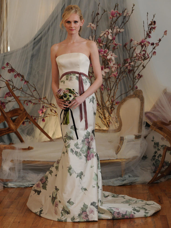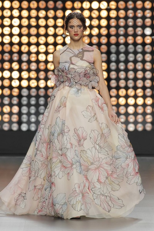 أما فستان الزفاف من "إيزابيل سانشيزIsabel Sanchis " فيتميز هو الآخر بقماش مزخرف بطبعات للأزهار مع قصة الأميرة تماما مثل الفستان الزفافي الفاخر من "رومونا كيفيزاRomona Keveza" المتميز كذلك بقصة الأميرة ورسوم للأزهار بألوان الباستيل؛ في حلة تفيض بأناقة مبتكرة رائعة.