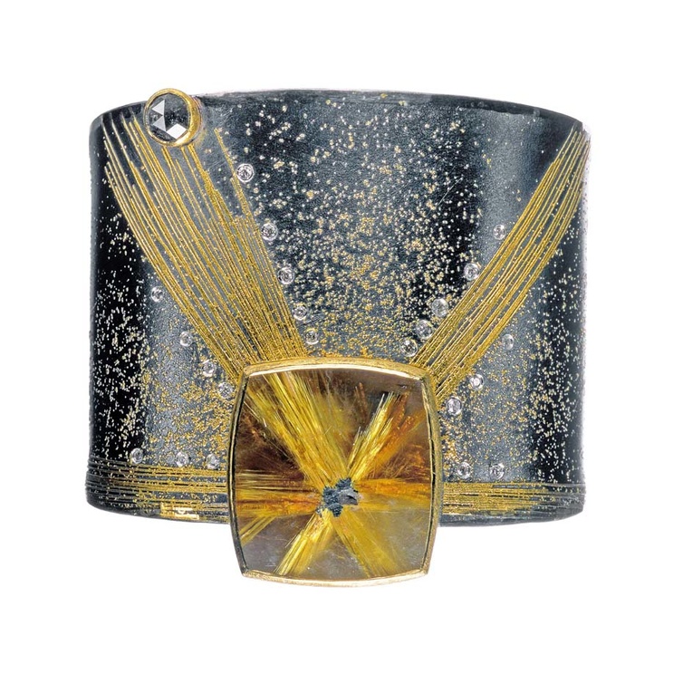 وجاء سوار من "أتلييه زوبيل Atelier Zobel" أيضا مناسبا لحلة الإطلالة، حيث تم تصميمه من الذهب والكوارتز المتألق إضافة إلى فصوص ماسية سوداء وأخرى عسلية اللون. سوار رائع بتصميم مبتكر جعل منه قطعة تتميز بجاذبية ساحرة خاصة.