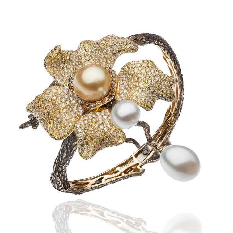 أما الخاتم فجاء بتصميم رائع من الذهب الأبيض واللؤلؤ على شكل وردة من توقيع دار Autore Pearls.