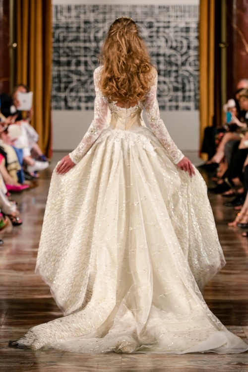 فمن مجموعة خريف-شتاء 2015-2016 للمصمم توفيق حطب وقع الخيار على فستان زفاف، يجمع بين الأناقة الملوكية والأنوثة الراقية... يتميز بقصته الضيقة وأكمامه الطويلة، ويأتي بتطريز يضفي عليه هالة من الجمال الإستثنائي، وخاصة وان ذيله المتوسط الطول مشكوك بأسلوب ناعم للغاية.