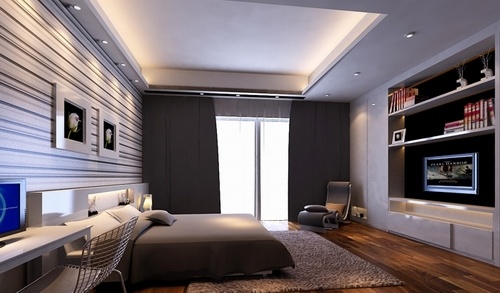 فهذه الغرفة مثلاً تحتوي على الفخامة والذوق الرفيع مع بساطة تصميمها خاصة أن ديكورات الجبس التي تفصل بين كراسي الجلوس وغرفة النوم يعطي مظهرًا جميلاً ومتميز.