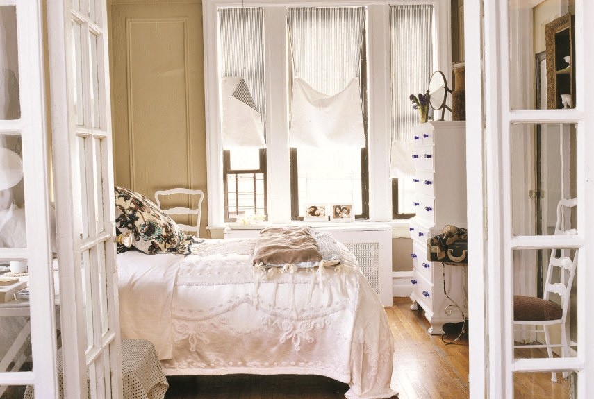 لاحظي اللوحات المعلقة على الجدران ، حيث تمزج بين اللون البيج الفاتح ، والدرجة الخشبية الداكنة ، ولا تنسي مفرش السرير الفاتح .