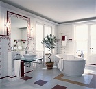 - وهناك نوعين من البانيو: المثبت بالحائط، والقائم على أربع أرجل، وأحبذ النوع الثاني الذي يعطي ديكورا فريدا للحمام.