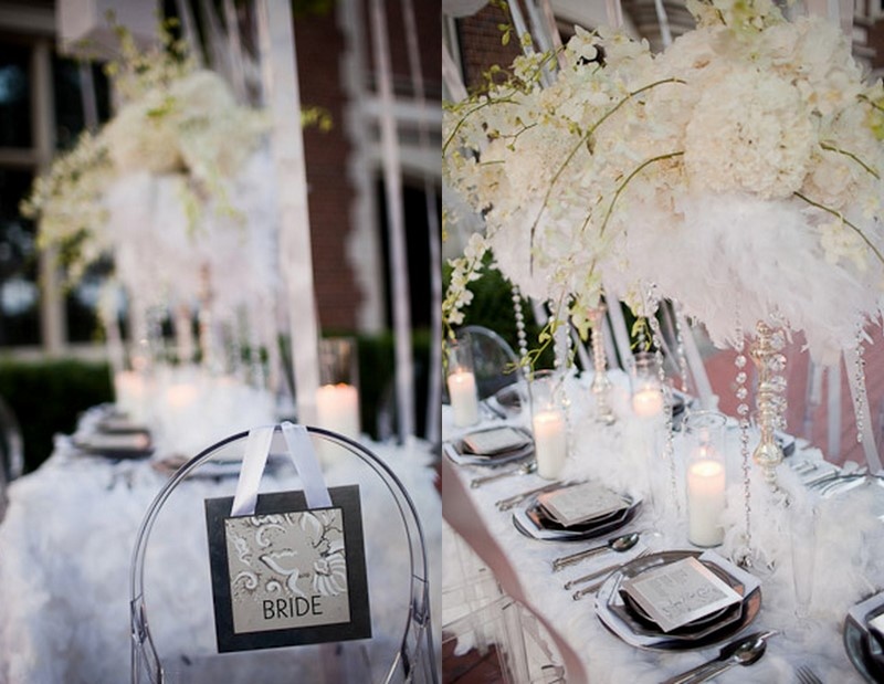 ليس هناك لمسات أكثر جمالاً من لمسات الريش الأبيض الناعم في حفل الزفاف. فهو يضفي على الجو العام لمسة رومانسية غاية في النعومة.
