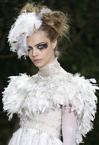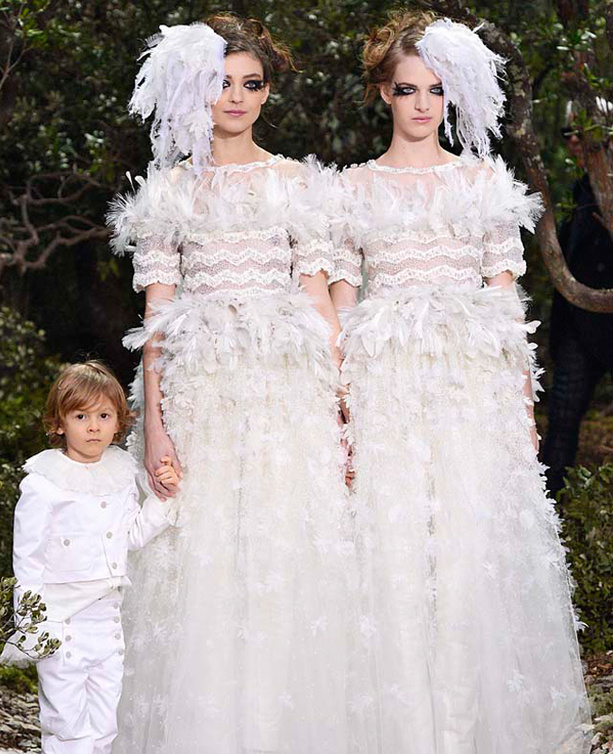 وكان كارل لاغيرفيلد قد استخدم الريش الناعم الممزوج بالورود في عرضه لفساتين الزفاف لمجموعة ربيع-صيف 2013 من شانيل.