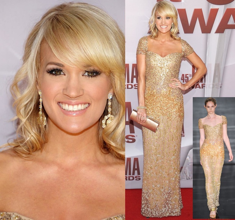 اثارت كارى أندروود إنتباه الجميع فى ثوبها الذهبى والمنمق في نوفمبر الماضى أثناء حضورها حفل توزيع جوائز CMA.