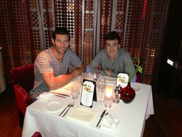 قبل وصوله إلى المنامة للمشاركة في جائزة البحرين الكبرى للفورمولا وان المقررة الأحد، حل الاسترالي مارك ويبر سائق ريد بول ضيفا على دبي حيث تناول العشاء الجمعة في أحد مطاعم الإمارة برفقة الاسباني فرناندو الونسو سائق فيراري.