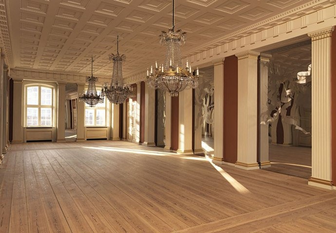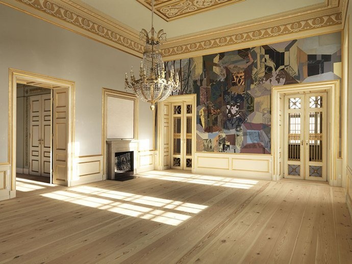 الجدران تم تزيينها بنقوش وزخارف ولوحات مجموعة من الفنانين الاسكندنافيين المعاصرين، وبعض قطع الرخام، ووصلت تكلفة تجديد القصر 26000000 جنيه إسترليني، لا تشمل إعادة تنسيق الحديقة المحيطة بالمقر كلها مزروعة بأشجار البرتقال، وحمام سباحة مساحته 40 مترا فقط.