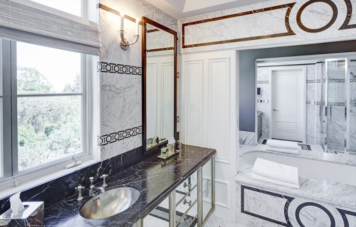 ويقع المنزل على مساحة 11.137 قدما مربعا ويتكون من 8 غرف نوم و10 حمامات ويشغل مساحة 0.82 فدان. ويتميز الطابق الأول بوجود مطبخ كبير وغرفة معيشة وغرفة طعام ومكتب وجناح للضيوف. أما الدور العلوي ففيه ثلاثة غرف نوم بحمام داخلي وجناح رئيسي بحمام.