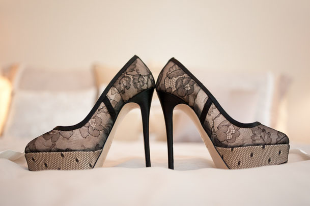 - حافظي على الفستان الابيض الذي إخترته ليومك،وأضيفي لمسات من الدانتيل الاسود وزيني إطلالتك بالاستعانة بكفوف الدانتيل او بحذاء الدانتيل الاسود.
