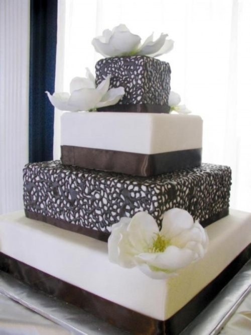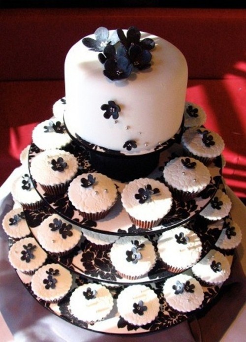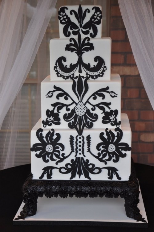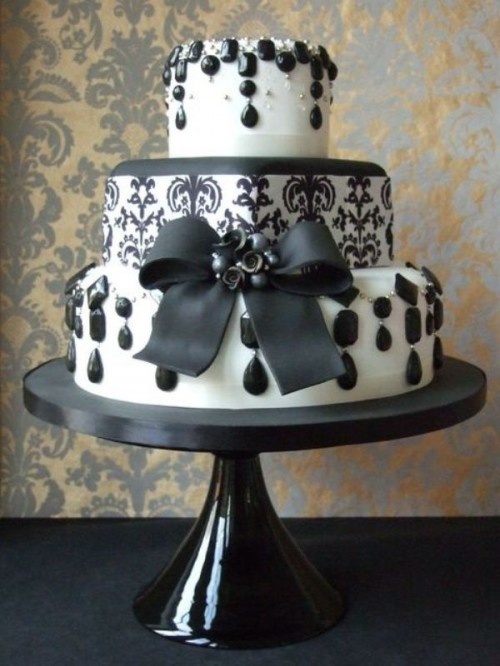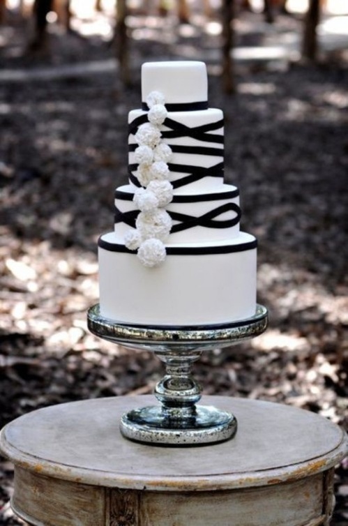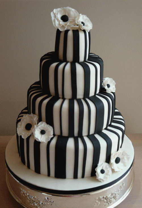 أجمل تصاميم كعكات الزفاف باللونين الأسود والأبيض