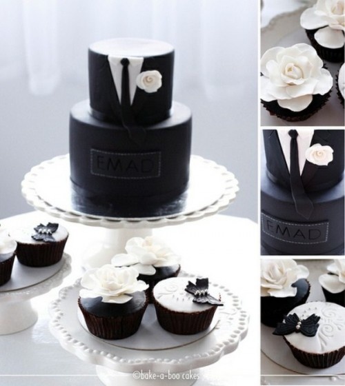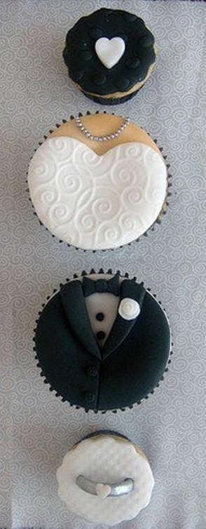 ويرغب البعض كما أصبح رائجاً باللجؤ الى فكرة ال"كاب كيك" حيث بالامكان تنفيذ العديد من التصاميم المتعلقة بالعروسين باللونين الابيض والاسود وابرزها تلك التي تبدو كفستان العروس وبدلة العريس.