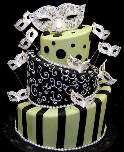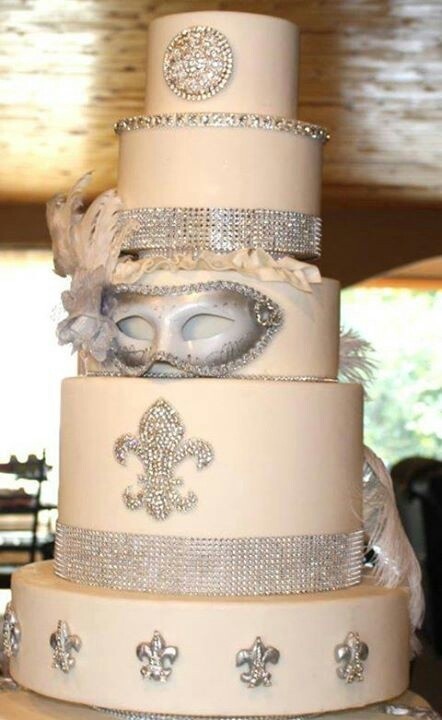 3- من المميز ان تزين كعكة الزفاف بزينة منسجمة، بالامكان وضع قناع من السكر على القالب يتخلله شرائط متدلية منه. كما بالامكان تزيين وجه "الكاب-كيك" بماسك مميز صغير.
