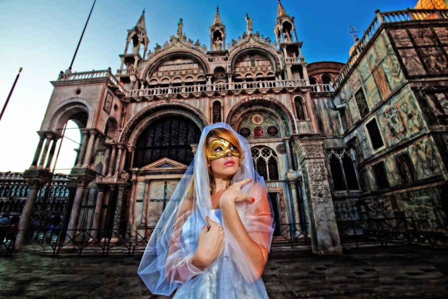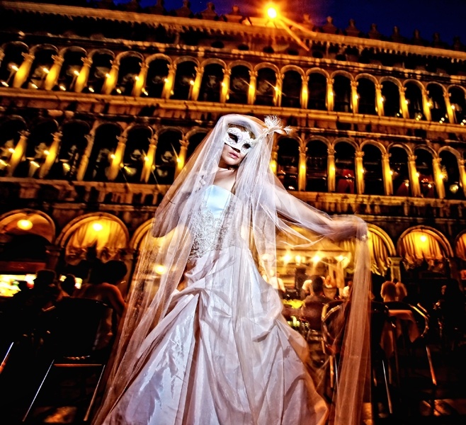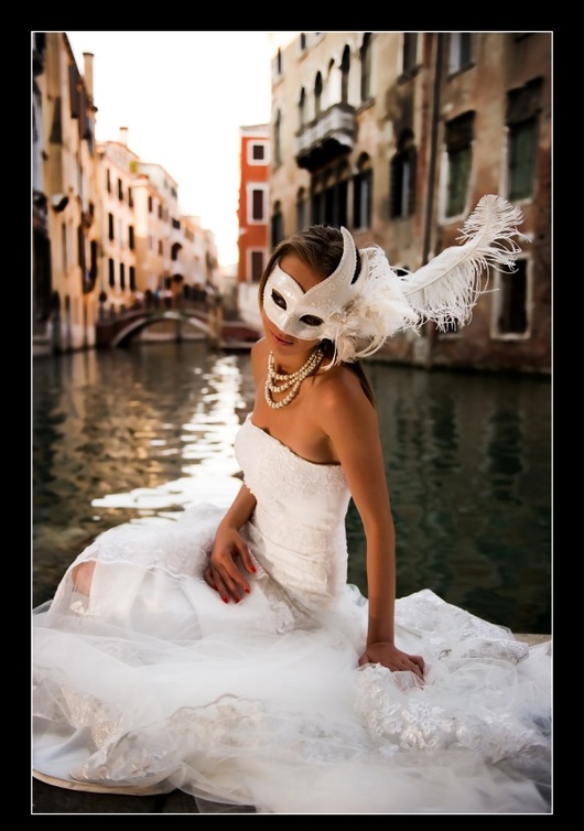 وتنوعت أشكال وألوان الأقنعة،وإختلفت زينتها ،لكن القناع الأبيض ظل مرتبطاً بالعروس التي كانت وما زالت تضع القناع في يوم زفافها هناك... فما رأيك ان تستحضري جمال وسحر مدينة البندقية الى حفل زفافك؟