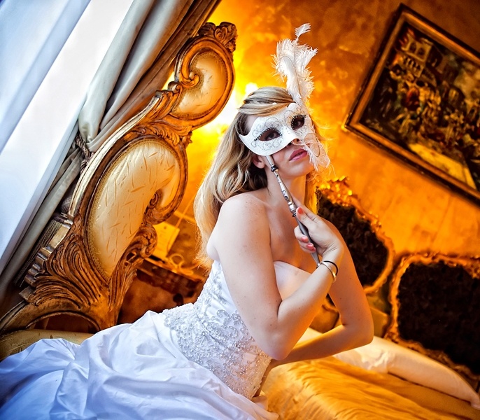 لأنه يوم زفافك. ويحق لك في هذا اليوم ما لا يحق لغيرك. إخترنا لك فكرة "زفاف القناع " خاصة اذا إقترب موعد زفافك من إحتفالات نهاية العام. فالقناع يرمز الى الغموض والأناقة الإستثنائية المميزة والغامضة في نفس الوقت. والأقنعة أساساً مرتبطة بالكرنفالات التي تقيمها مدينة البندقية الساحرة "فينيسيا" في كل عام وذلك منذ أيام الرومان حيث كان النبلاء يرتدونها في القرنين 16 و17 لإخفاء شخصياتهم.