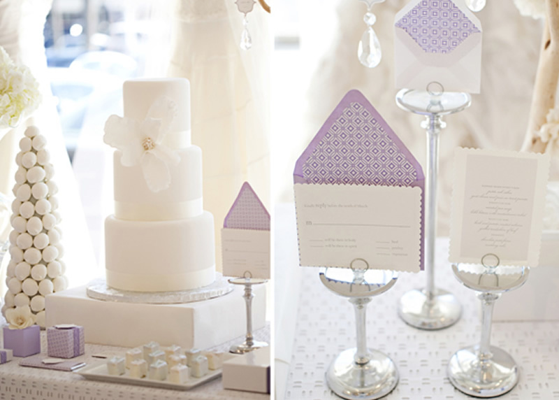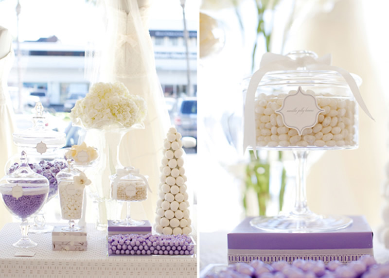 وبإمكانك تزيين ديكور الطاولات الأساسية أو طاولات الحلوى، بالمزج بين اللونين الأبيض والبفسجي لإعطائها جمالاً منسجماً وناعماً.
