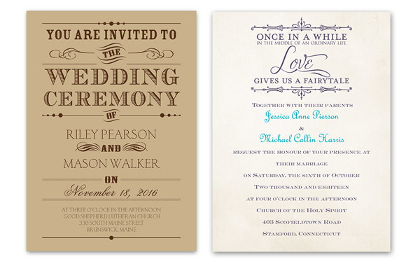 هناك أنواع أخرى من دعوات الزفاف المطبوعة مثل Typography on Craft, Charmed فتقدم مجموعة واسعة ومتنوعة من دعوات الزفاف للاختيار من بينها. لكن الدعوة الأكثر شعبية هذا الموسم هي الدعوات الريفية أو الخمرية مع لمسة عصرية رائعة حيث يمكنك الإختيار من ضمن تشكيلة واسعة تشمل تفاصيل من الدانتيل الراقي مثل Delicate lace وChalkboard وTypography layouts.