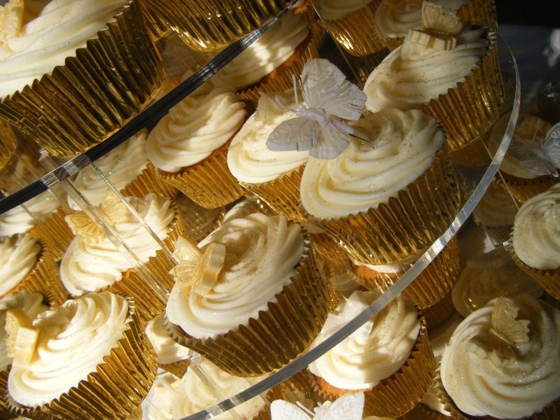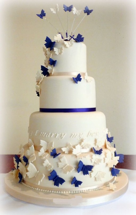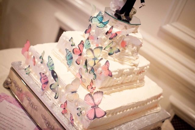 -أما كعكة الزفاف والحلويات المرافقة مثل الكاب كيك وغيرها بالإمكان تزيينها بالفراشات الناعمة التي تكمل جمال الفكرة المعتمدة في الحفل .