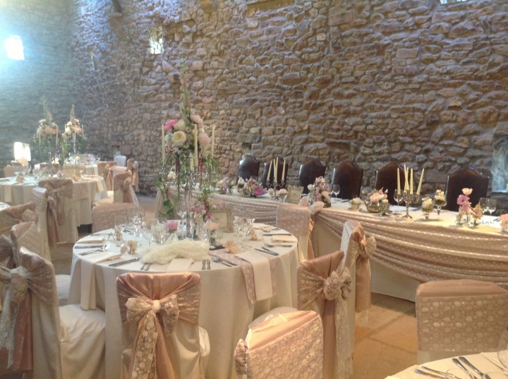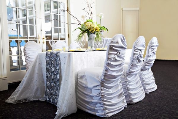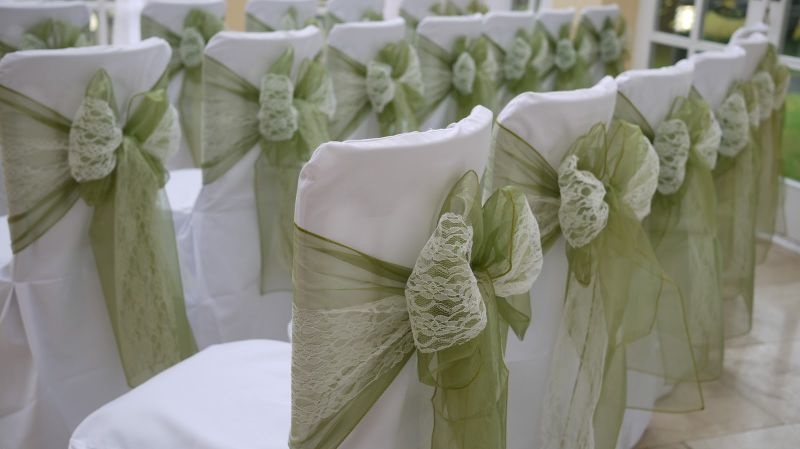 وتعتبر الأقمشة التي يتم إختيارها لمكان الزفاف بمثابة الفستان للعروس، فمن أقمشة الطاولات الى البرادي وصولاً الى أغطية الكراسي التي تضفي جمالاً رائعاً إلى جو الحفل.