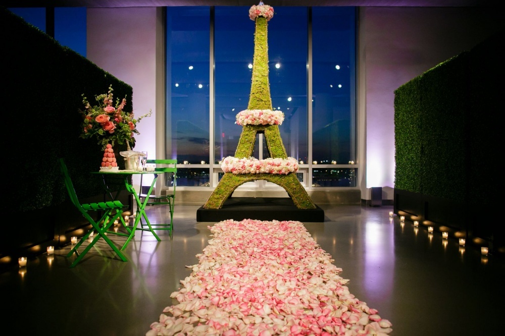 -الديكور : إتفقي مع منسق الحفل على إضافة لمسات من وحي باريس لمكان الحفل حتى يبدو الحفل  منسجماً بديكوره مع بعضه البعض .