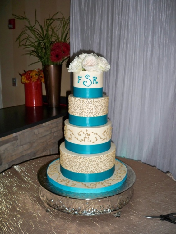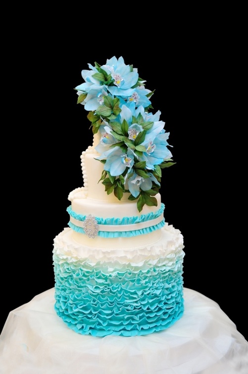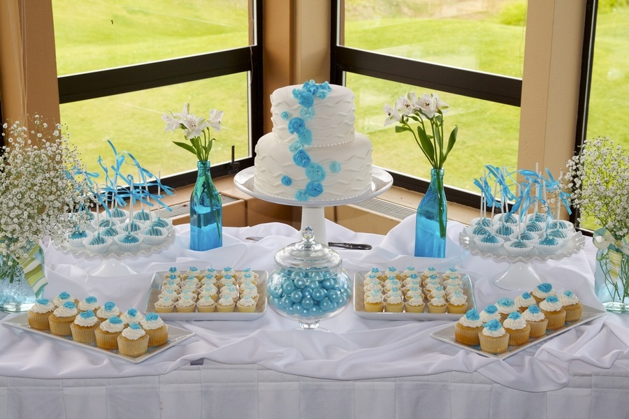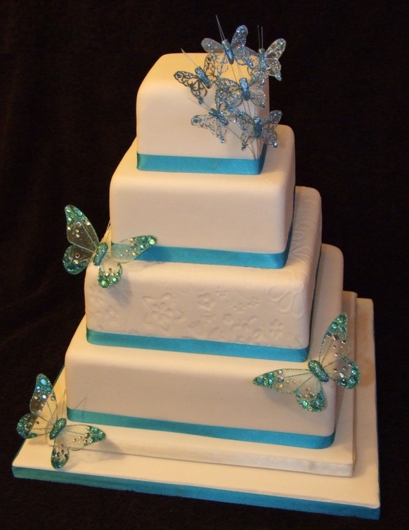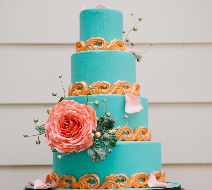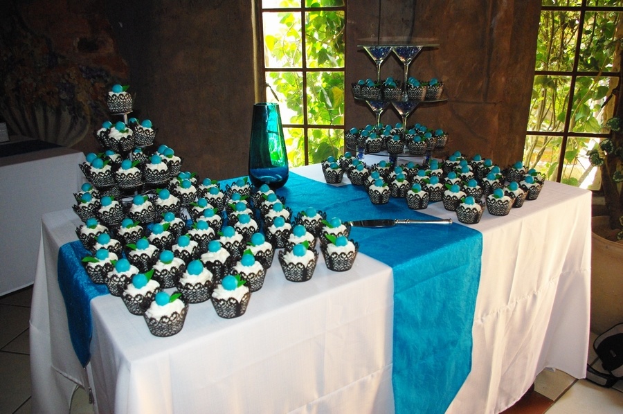 -إختاري كعكة الزفاف المزينة بالإكسسوارات الفيروزية... كما بالإمكان الإعتماد على زينة ناعمة للكاب كيك باللون الفيروزي.