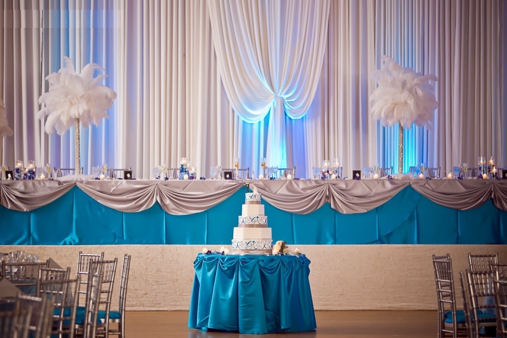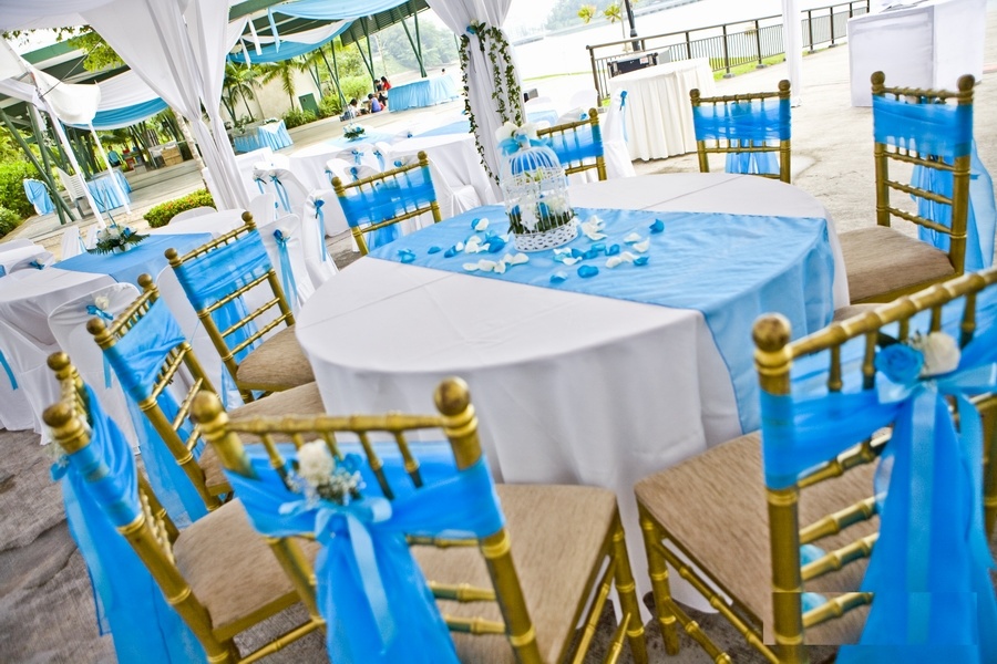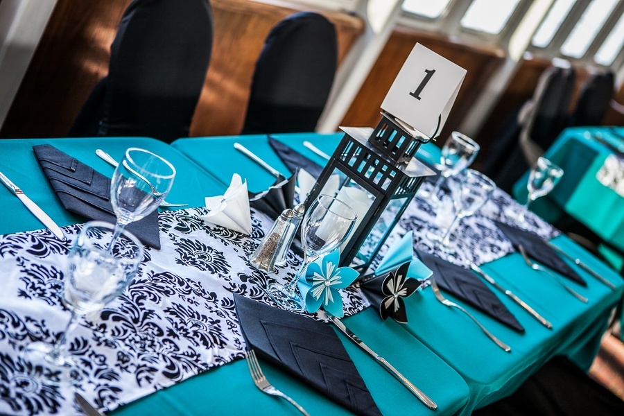 -إختاري تفاصيل ديكور طاولات المدعوين باللون الفيروزي، إعتمدي على أغطير الكراسي الفيروزية على سبيل المثال.