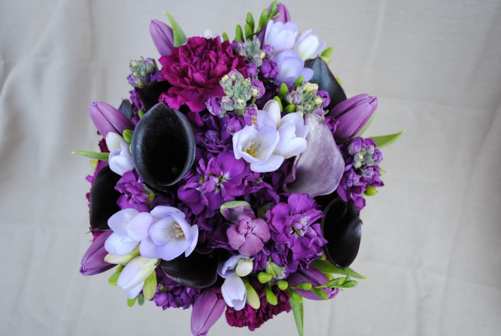 -الورود: إختاري الورود البنفسجية المندمجة مع الورود البيضاء لزينة تفاصيل قاعة الزفاف من البوكيهات المخصصة لوسط الطاولات الى زينة الكوشة وصولاً الى باقة اليد.. فاللون البنفسجي ينسجم بشكل متميز مع الورود البيضاء او الورود البنفسجية الفاتحة اللون.