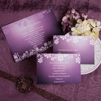 -بطاقة الدعوة: ان بطاقة الدعوة هي العنوان الذي تقدمينه لمدعوينك.. إختاري البطاقة البنفسجية الراقية لتخبري بطريقة غير مباشرة عن الأجواء البنفسجية التي ستكون بإنتظارهم.