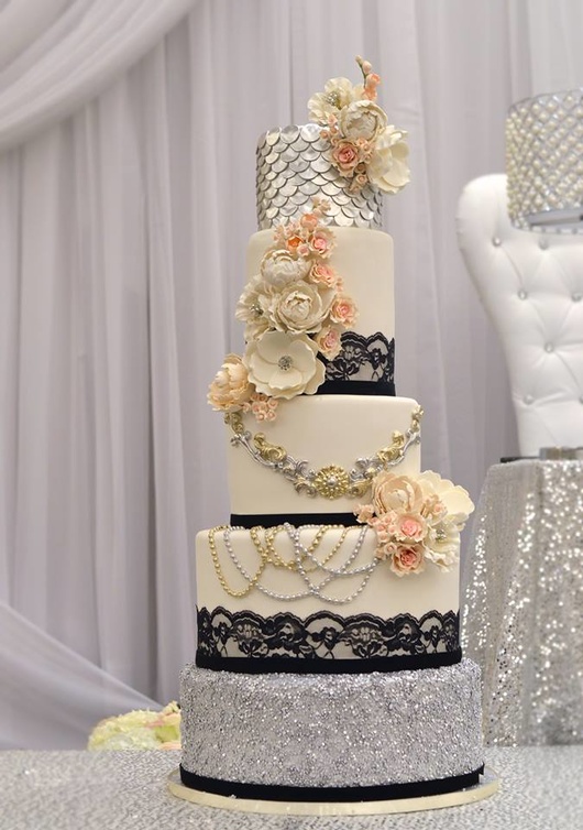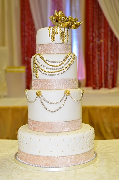 أما رقي الكعكات الكلاسيكية يكمن في زينة السلاسل التي تضفي اناقة وجاذبية لا مثيل لهما، وتشبه بأناقتها أناقة العروس بفستانها الأبيض وعقد اللؤلؤ الذي يزين اطلالتها بكل نعومة.