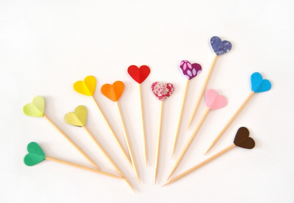 "أوراق ملونة على شكل قلوب":