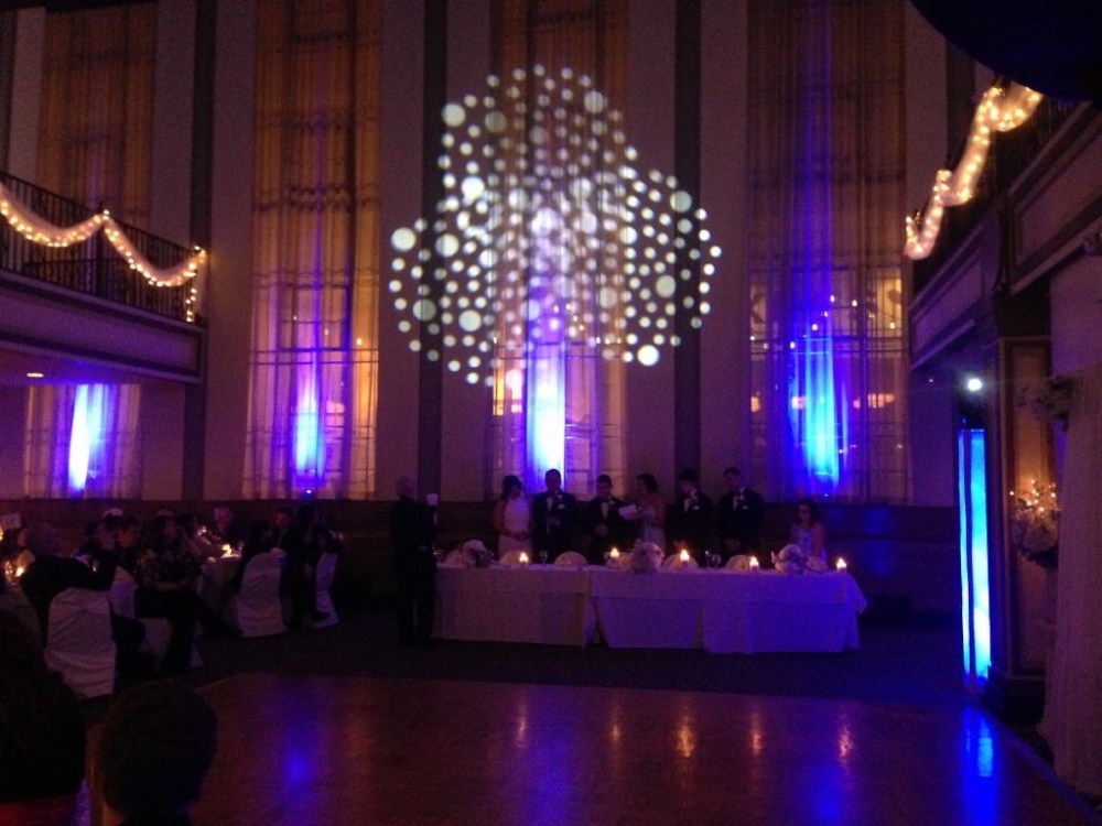 -إذا كان زفافكِ في المنزل أو في قاعة صغيرة، فيمكنكِ أن تستعيني بإضاءة الليزر على المبنى من الخارج.