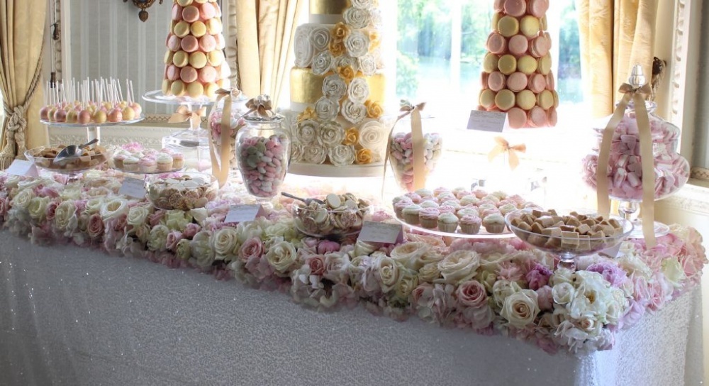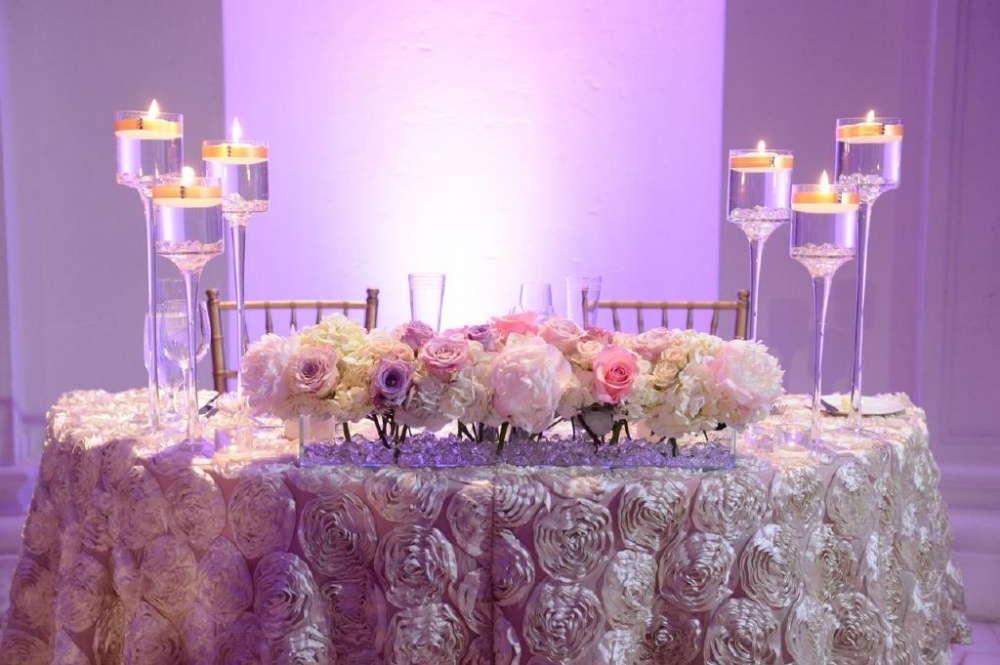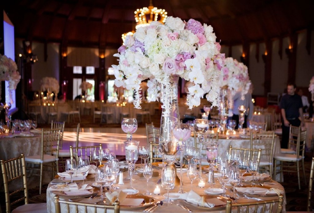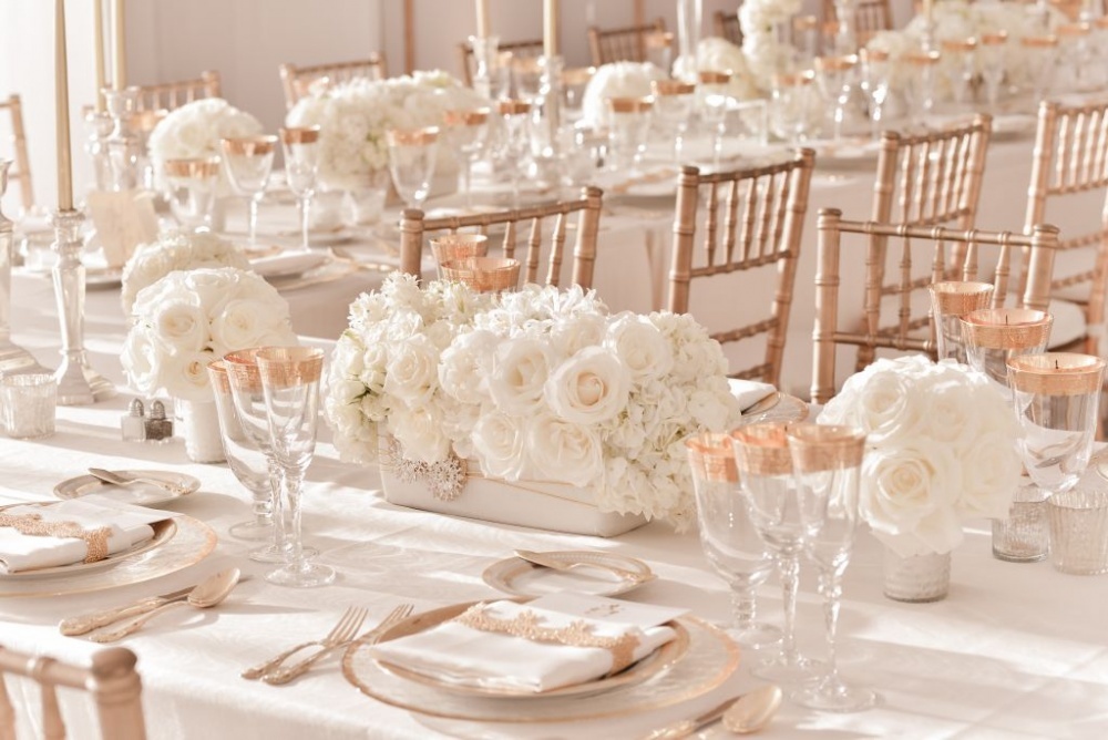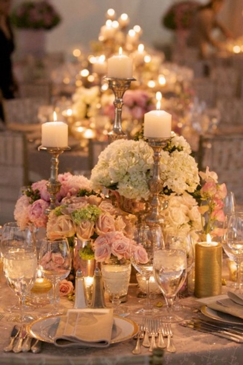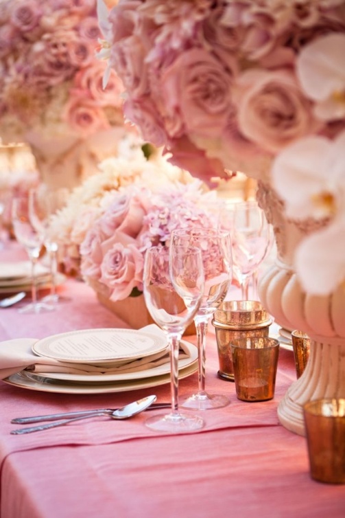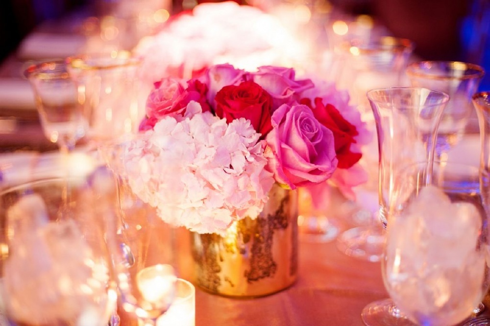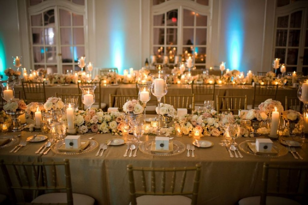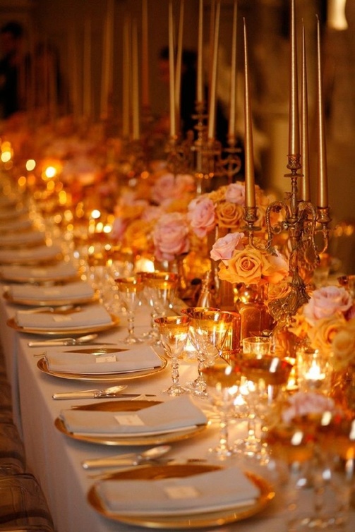 -دعي تفاصيل الديكور تمزج بين الذهبي والورودي، اختاري ديكور الطاولات بالذهبي وزينيها بالوردي.