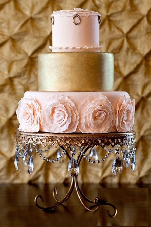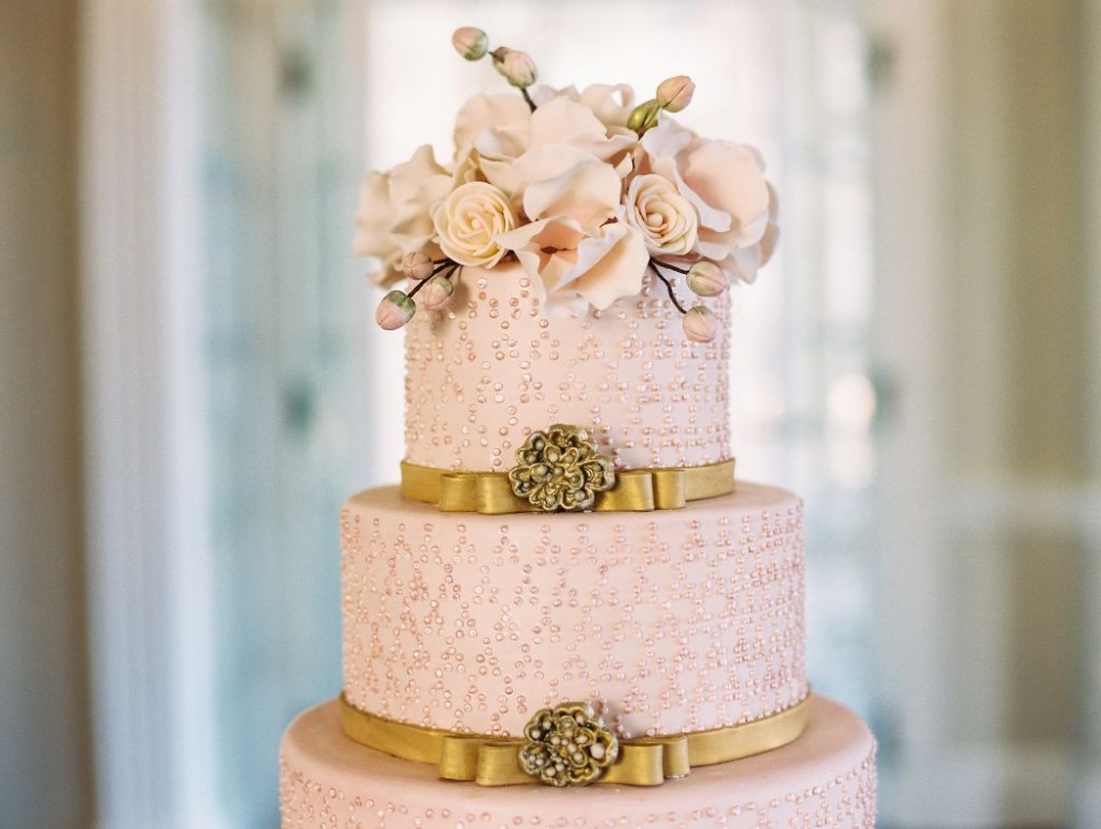 -اختاري الكعكة التي تحاكي بألوانها مزيج الأبيض والزهري بلمسات ذهبية ملفتة.