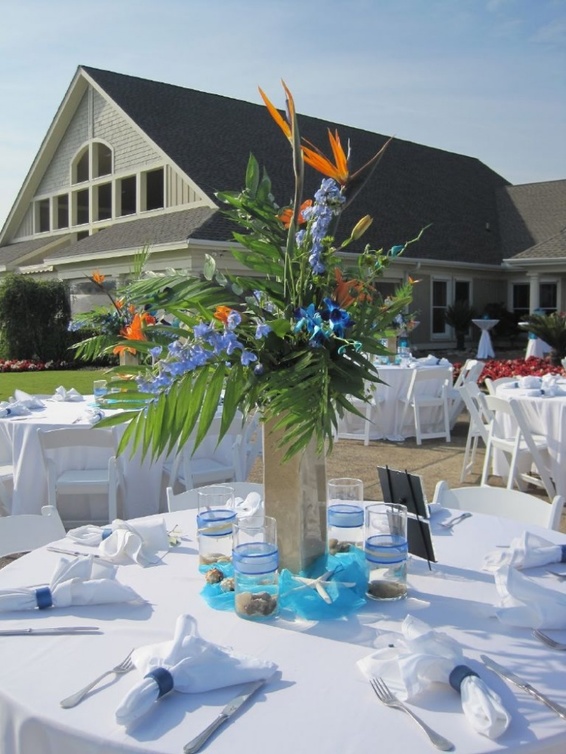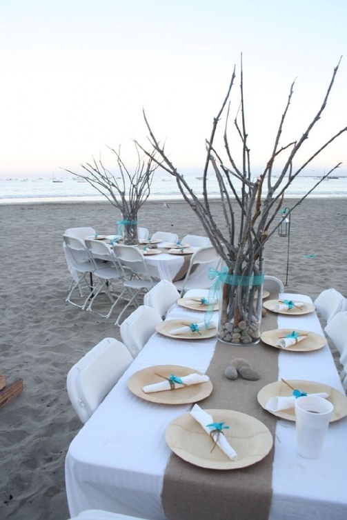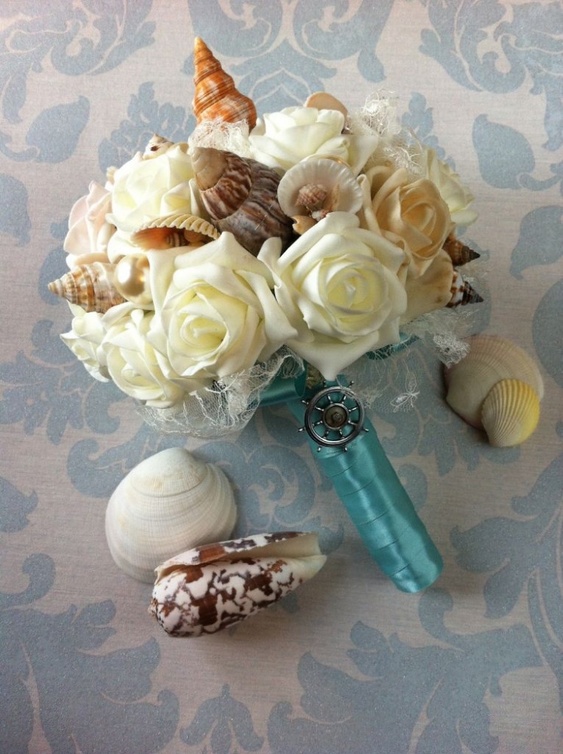 ويمكنك أن تستخدمي الأصداف ونجوم البحر أو القطع المصممة على شكل سفن صغيرة في تزين طاولات حفل الزفاف مع الأزهار المستخدمة في تزيين الطاولات.