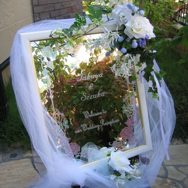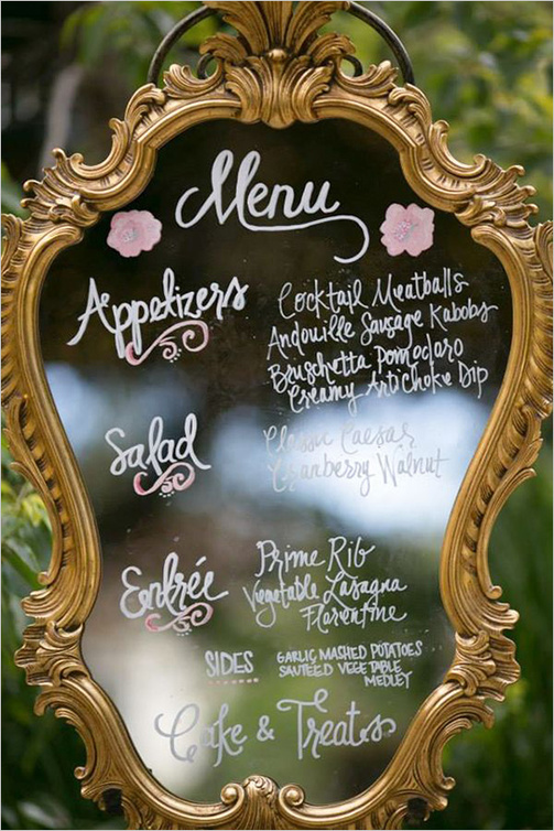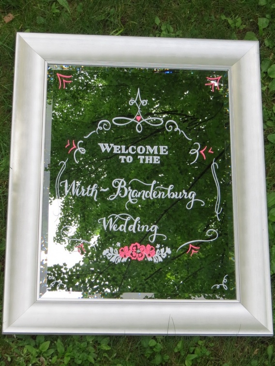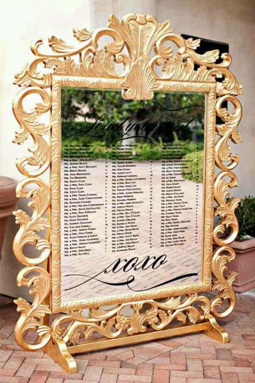 -إستخدام المرايا للترحيب بالضيوف حيث يمكن إستعمالها للزفاف الداخلي أو الخارجي على حدّ سواء كما ستشاهدين في الصور أعلاه، كذلك يمكن أن تعرضي تفاصيل الدعوة مع أسماء أهل العروس والعريس وأسماء وصيفات الشرف للعرسان وإضافة ما ترغبين من كلمات ترحيبية.