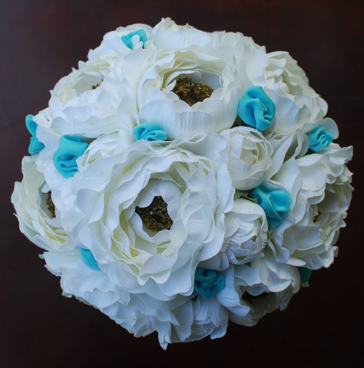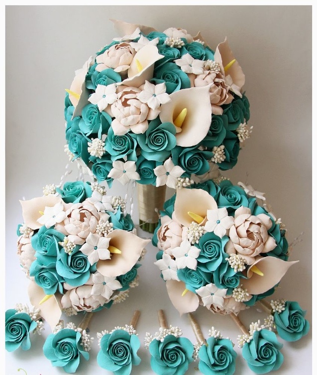 -لوني باقة الورد الذي تحملينها بإكسسوارات تركوازية، او ادخلي بعض الورد القماشي بلون التركواز بين ورود الباقة الطبيعية.