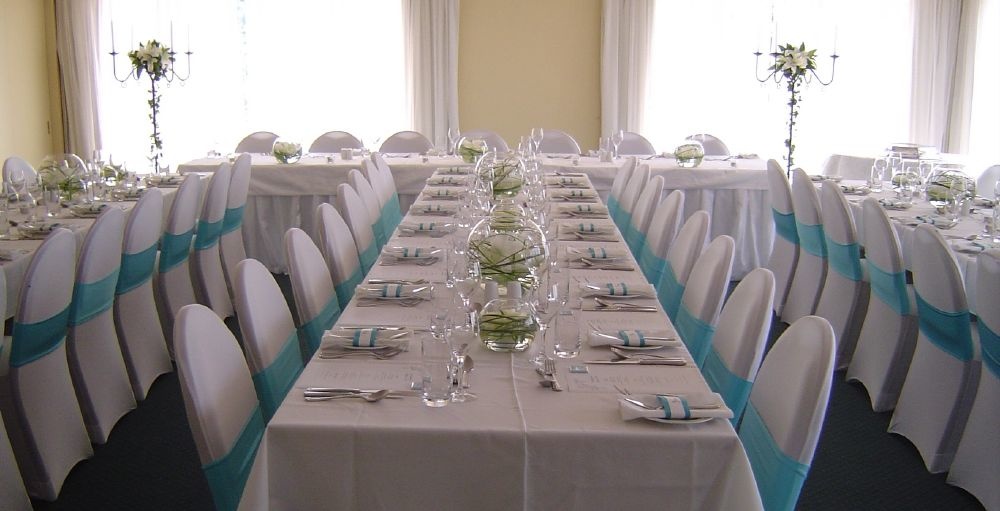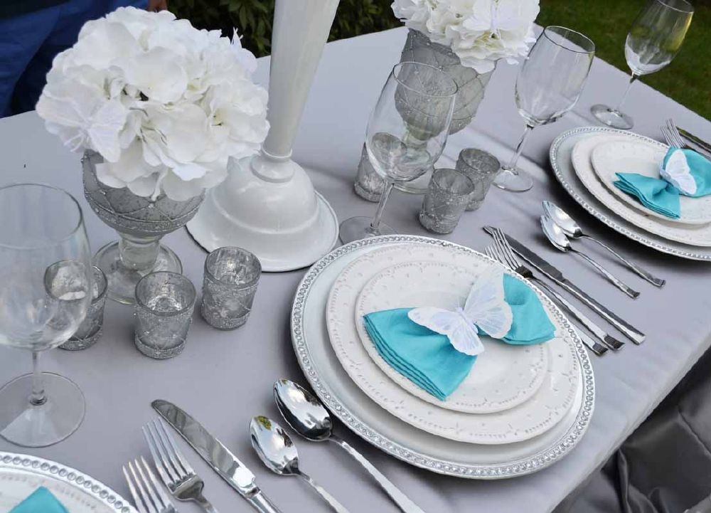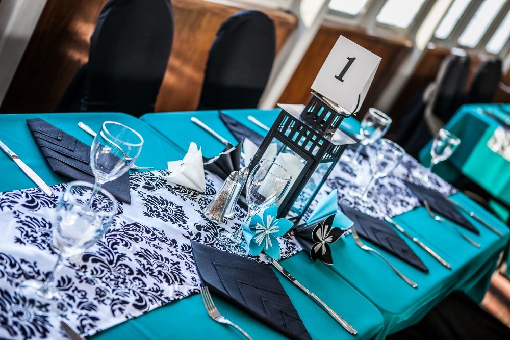 -اختاري اكسسوارات طاولات الضيوف باللون التركوازي.
