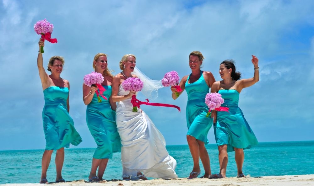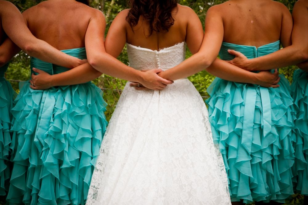 -ولم لا تختارين فساتين الزفاف للوصيفات باللون التركوازي.