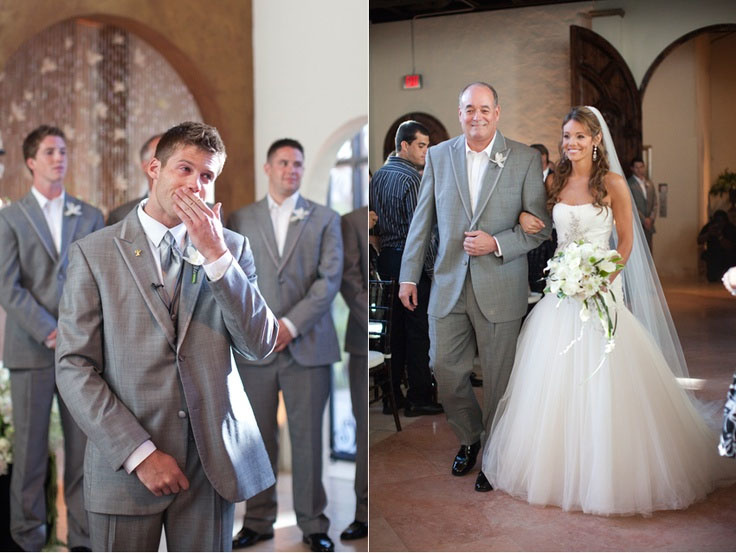 قد يكون العريس شاهد العروس في العديد من الأوقات قبل الزفاف بكل حالاتها وإطلالاتها بما فيها أسوأ هذه الحالات. وها هو اليوم في حفل الزفاف يرى عروسه بأفضل إطلالة لها لم يكن يتصورها بها قط من قبل. ردة فعل العريس لحظة رؤية عروسه وإعجابه بها والنظر في عينيها ستكون حتما جديرة بأن تبقى ذكرى خالدة.