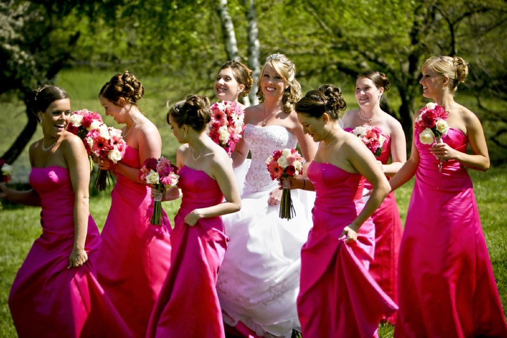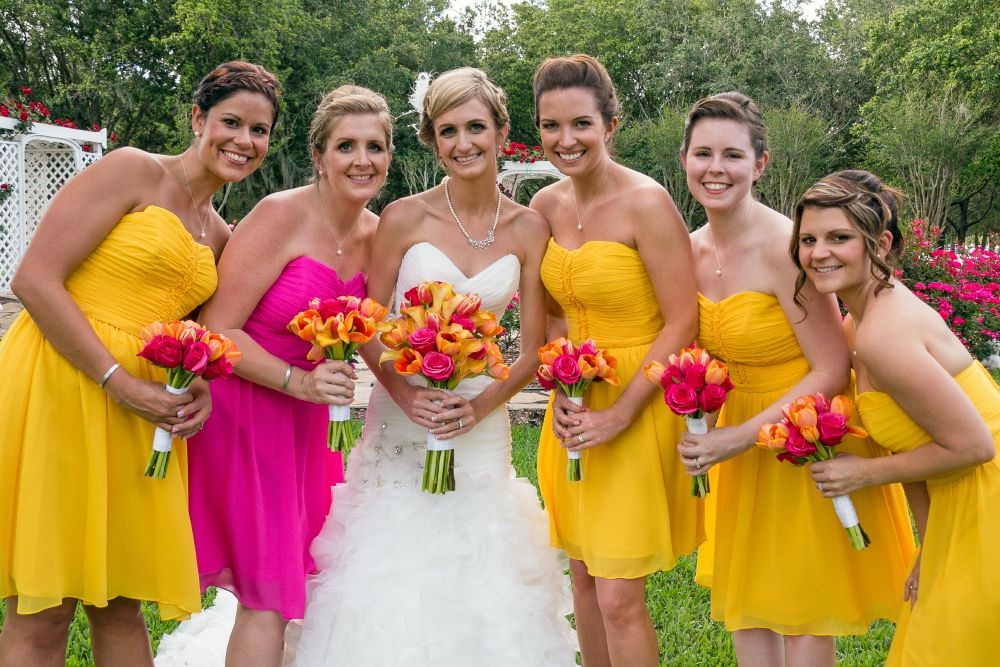 -اناقة الوصيفات، من المميز ان تطل الوصيفات بفساتين او اكسسوارات باللونين الأصفر والزهري.
