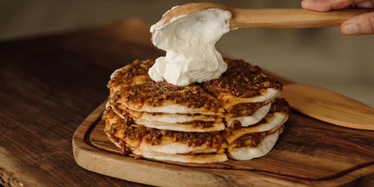 تُفرَد أرغفة الخبز الرقيقة واحدة تلو الأخرى، ويُوزَّع فوق كل منها صلصة لحم مفروم بسيطة. وكلما ازدادت الطبقات، ظهرت المائدة أكثر كرماً وسخاء.