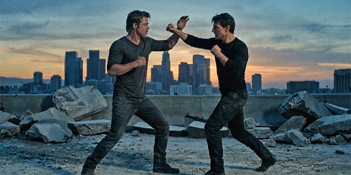 رجلان يتواجهان فوق سطح مبنى شاهق، والمدينة تحت قدميهما تبدو كعملاق جاثم يراقب في صمت ثقيل. الريح تمرّ بين الجسدين كما لو أنها تستدعي الدراما، والكاميرا — التي لا وجود لها في الحقيقة — تدور حولهما بثقة مصوّر يعرف تمامًا أين يسقط الضوء وأين ينكسر الظل. لكمة أولى، التفاف جسدين، ارتطام معدني خاطف، أنفاس لاهثة وعنف يتصاعد، ضربات ولكمات تتلاحق بإيقاع محسوب، ثم جسدان يترنحان قبل أن يستسلما للأرض. كل شيء يبدو مُدارًا بعناية إنتاجية باهظة، كما لو أن وراء المشهد جيشًا من الفنيين يعمل في صمت. الوجهان مألوفان إلى درجة الإرباك: توم كروز وبراد بيت، أو نسختان أقرب إلى الحقيقة مما تود الحقيقة نفسها الاعتراف به.