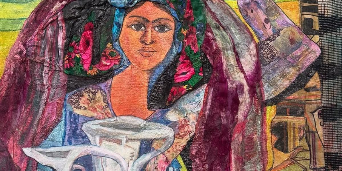 أما في لوحة "الصبية"، فتأخذنا منيرة موصلي إلى مساحة أكثر حميمية وتجريبًا، حيث تتداخل الوسائط اللونية على الورق لتشكّل حضورًا إنسانيًا بسيطًا في ظاهره، لكنه مشحون بإحساس داخلي عميق. أعمال موصلي لا تبحث عن الشكل بقدر ما تبحث عن الإحساس، عن تلك اللحظة التي يتقاطع فيها اللون مع الذاكرة، فيتحول العمل إلى تجربة شعورية مفتوحة.