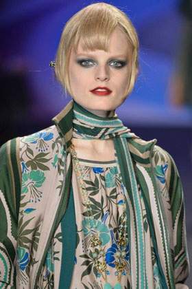 كما يمكنك التمثّل بعرض أزياء Tracy Reese حيث ركّزت على ابراز العيون الملوّنة وجعل النظرة حالكة بجاذبيتها، من خلال مزجها بالظلال الفضية الناعمة. فاختاري ظلال Style Eye Con No.3 The Mod 112 من "مارك جايكوبز" Marc Jacobs على جفنك العلوي برسمته العريضة التي تمنح عيونك سحراً مضاعفاً، أو اجعلي عينك زرقاوتان على طريقة Derel Lam باستعمال ظلال العيون الاربعة Les 4 Ombres Fascination من مجموعة من "شانيل" Nuit Magique Chanel وضعيها على الزاوية الخارجية للعين قبل أن تقومي بمزجها الى داخل العين مع تمريريها على الجفن السفلي أيضاً.