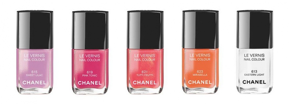 من Mac اخترنا لك مجموعة الظل والضوء وهي عبارة عن ستة ألوان، صممت جميعها لتلائم أي لون بشرة، وهي تعبر عن طريقة أنيقة وراقية لتزيين أظافرك بإسلوب مريح. هذه الألوان تدرجت بين الزهري، والأخضر، الأبيض والذهبي اللؤلؤي، البيج والأسود أيضاً. كما بإمكانك أن تجربي مجموعة ألوان Reflects D’e’te’ من Chanel. هذه المجموعة الرائعة التي تتكون من خمسة ألوان هي البنفسجي الفاتح Sweet Lilac، الزهري الغامق Pink Tonic، البرتقالي اللماع المائل للزهر Tutti Fruti، البرتقالي Mirabella و الأبيض Eastern Light.